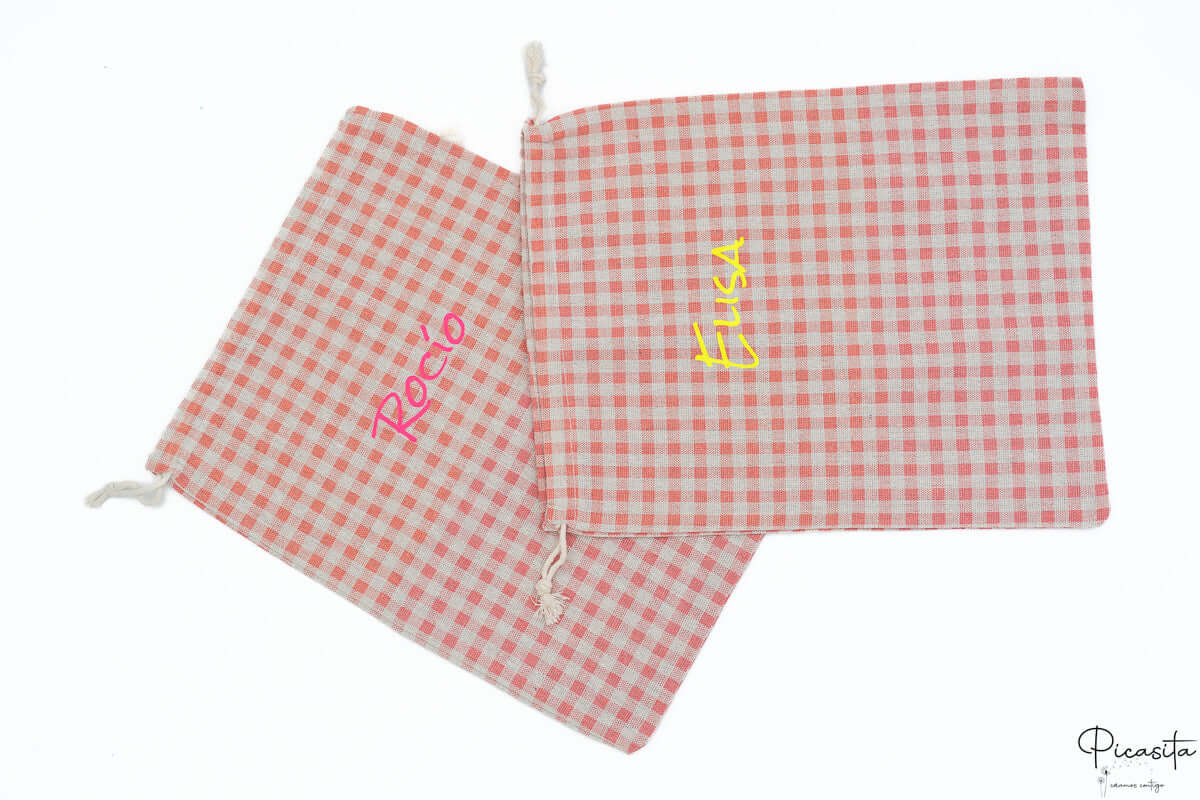 Modell Rosa Karo (Vichy): Ein klassisches Beuteldesign, zeitlos und lieblich, das nie aus der Mode kommt.