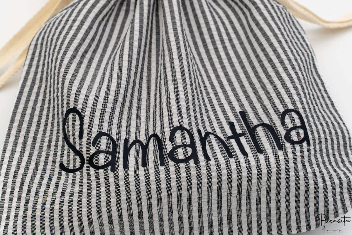 Der magische Akzent entsteht durch die Personalisierung. Wir verwandeln jeden Beutel in eine exklusive personalisierte Tasche, indem wir den Namen deines Sohnes oder deiner Tochter mit hochwertiger Thermotransferfolie aufbringen. Jede personalisierte Tasche wird mit viel Liebe in unserer Werkstatt gefertigt. Um eine gepflegte und harmonische Optik zu gewährleisten, verwenden wir die elegante Schriftart Noteworthy, die gleichzeitig verspielt und gut lesbar ist. Wenn du ein personalisiertes Produkt verschenkst, gibst du ein Detail, das speziell für diese Person gedacht ist, stärkst ihre Identität und schaffst eine liebevolle Erinnerung an die ersten Schuljahre.