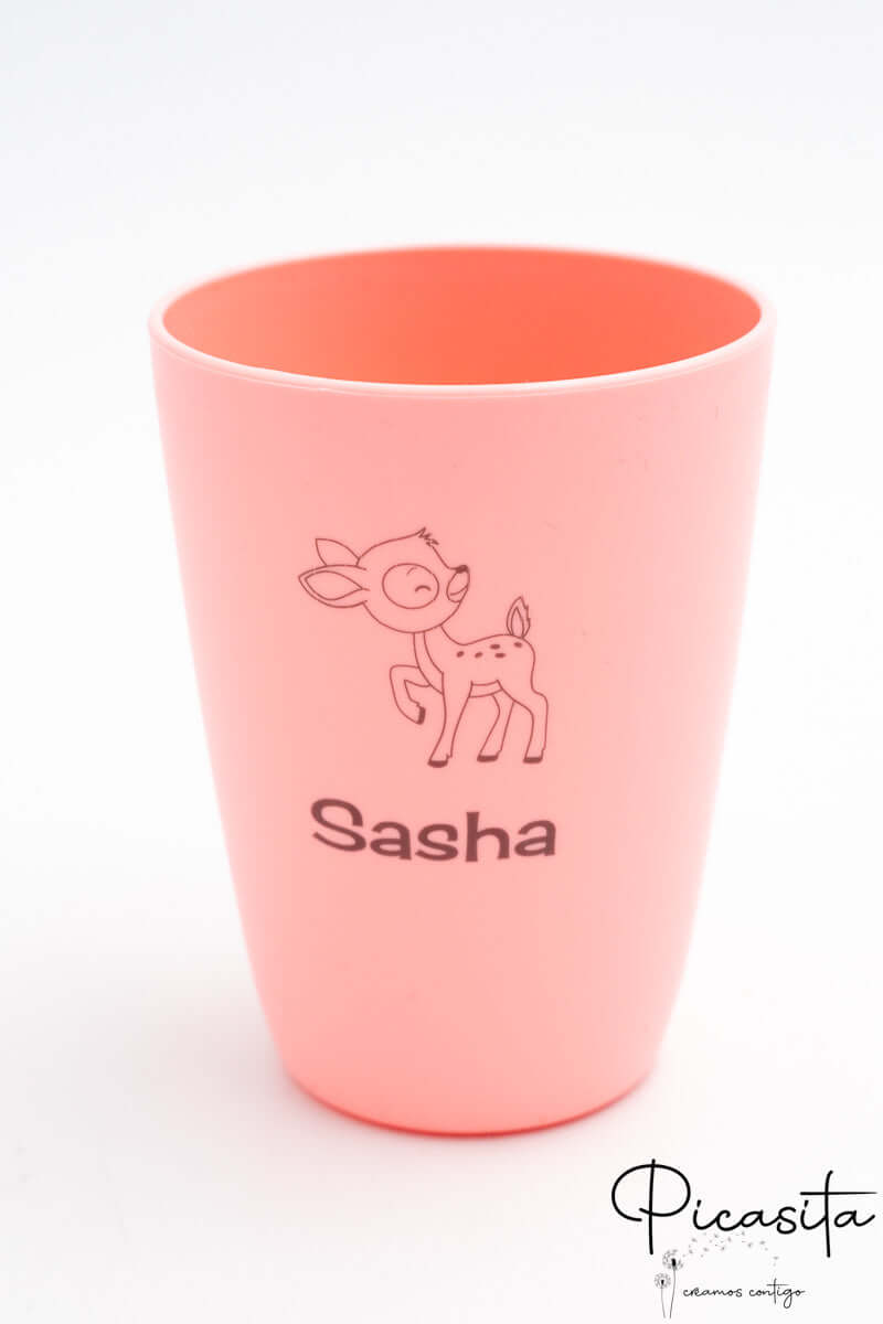 Das ist die beste Wahl! Da es ein unzerbrechlicher und personalisierter Becher mit dem Namen jedes Kindes ist, vermeidest du die typischen Verwechslungen der Getränke während der Party und schenkst ein super nützliches Detail, das sie jeden Tag zu Hause oder in der Schule verwenden werden.