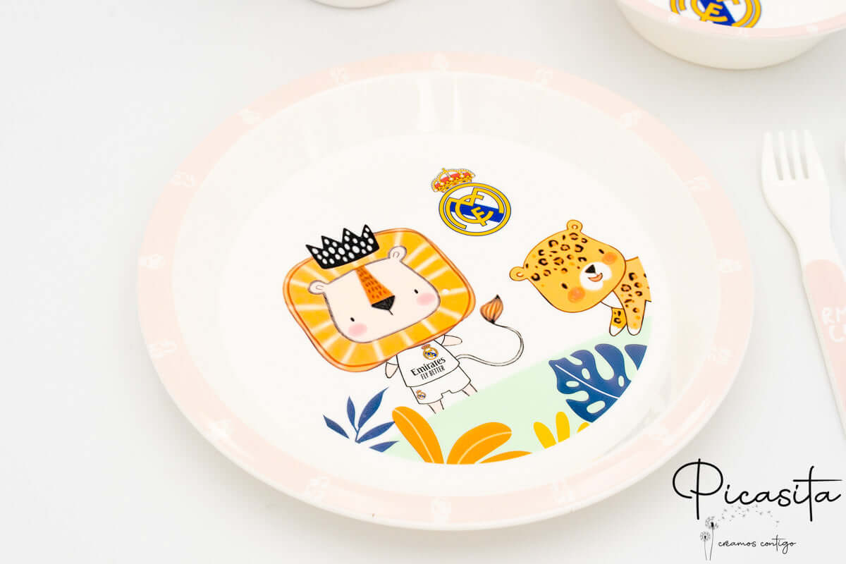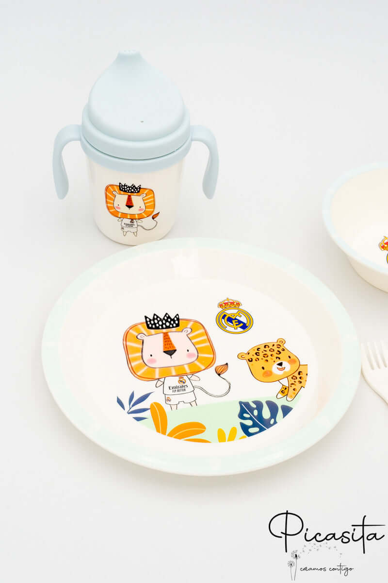 Die Essenszeit ist ein entscheidender Moment für die Entwicklung Ihres Kleinen. Mit diesem Kindergeschirr verwandeln Sie jeden Teller in ein spannendes Erlebnis voller Werte. Bei Picasita.es präsentieren wir Ihnen das ultimative Kindergeschirr von Real Madrid: ein Werkzeug, das die sportliche Leidenschaft mit der Funktionalität verbindet, die Sie im Alltag benötigen, damit Ihr kleiner Madridista jeden Bissen genießen kann.