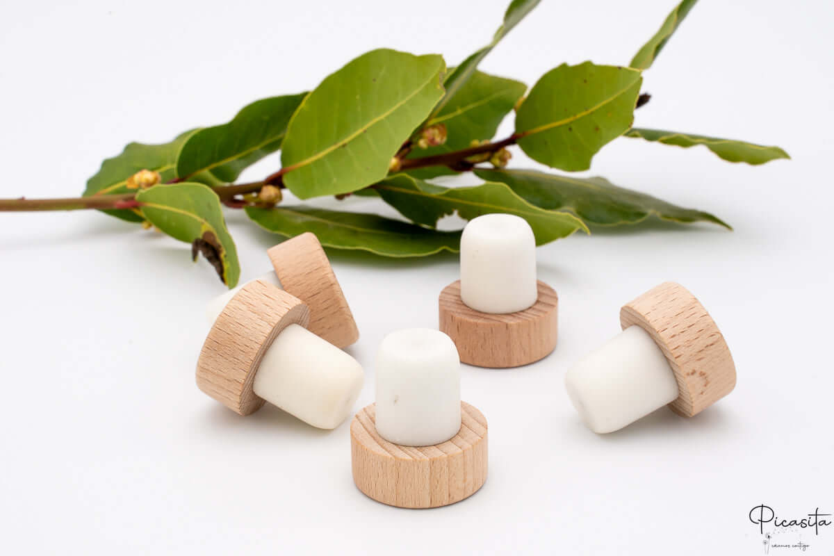 Bewahren Sie Ihre Getränke stilvoll und sicher mit unseren Flaschenverschlüssen aus Holz und synthetischem Kautschuk auf. Diese Verschlüsse sind so konzipiert, dass sie eine luftdichte Versiegelung bieten, die Ihre Flüssigkeiten frisch und geschützt hält und Auslaufen und Verschütten verhindert. Die Kombination aus Naturholz und synthetischem Kautschuk sorgt für Langlebigkeit und eine perfekte Passform bei den meisten Flaschen.