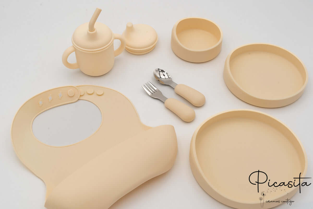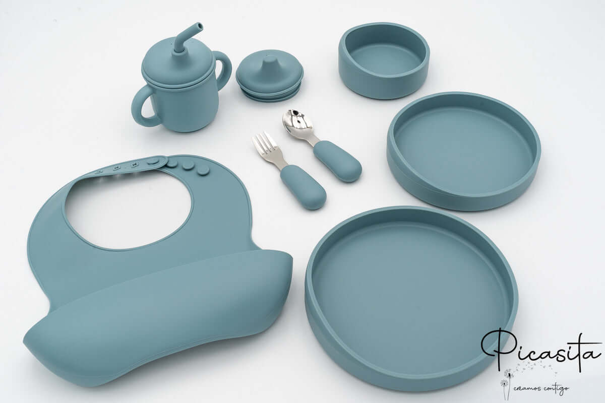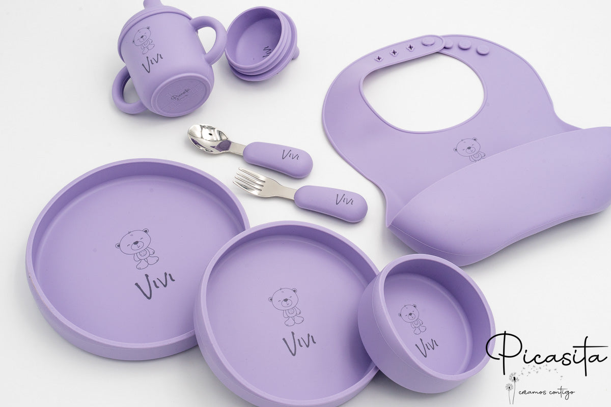 Fördern Sie die Selbstständigkeit Ihres Kleinen mit unserem exklusiven personalisierten Baby-Geschirrset von Picasita. Dieses umfassende Lebensmittelsilikon-Geschirrset ist so konzipiert, dass es Ihr Kind ab 5-6 Monaten begleitet und das perfekte Werkzeug für den Beginn der Beikost und die Baby Led Weaning (BLW)-Methode ist. Wenn Sie maximale Sicherheit und Stil suchen, entdecken Sie unser gesamtes Sortiment an personalisiertem Kindergeschirr.