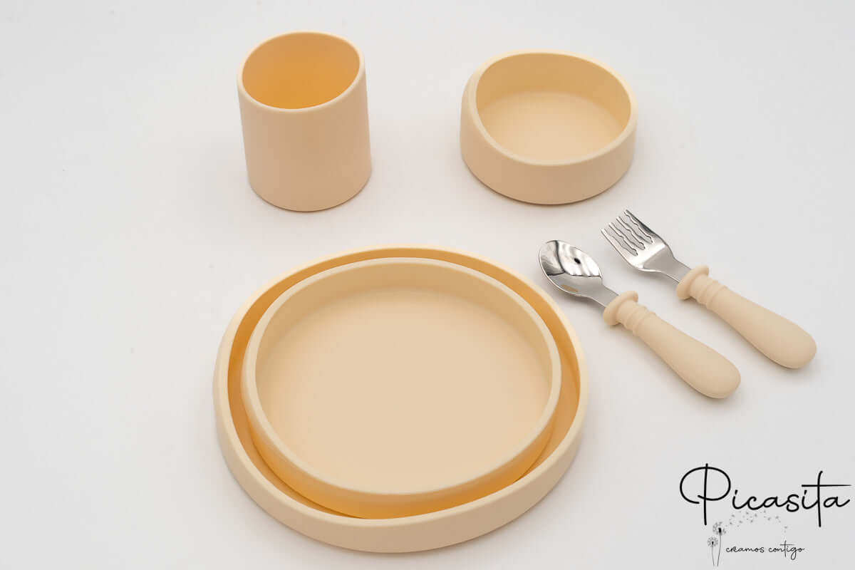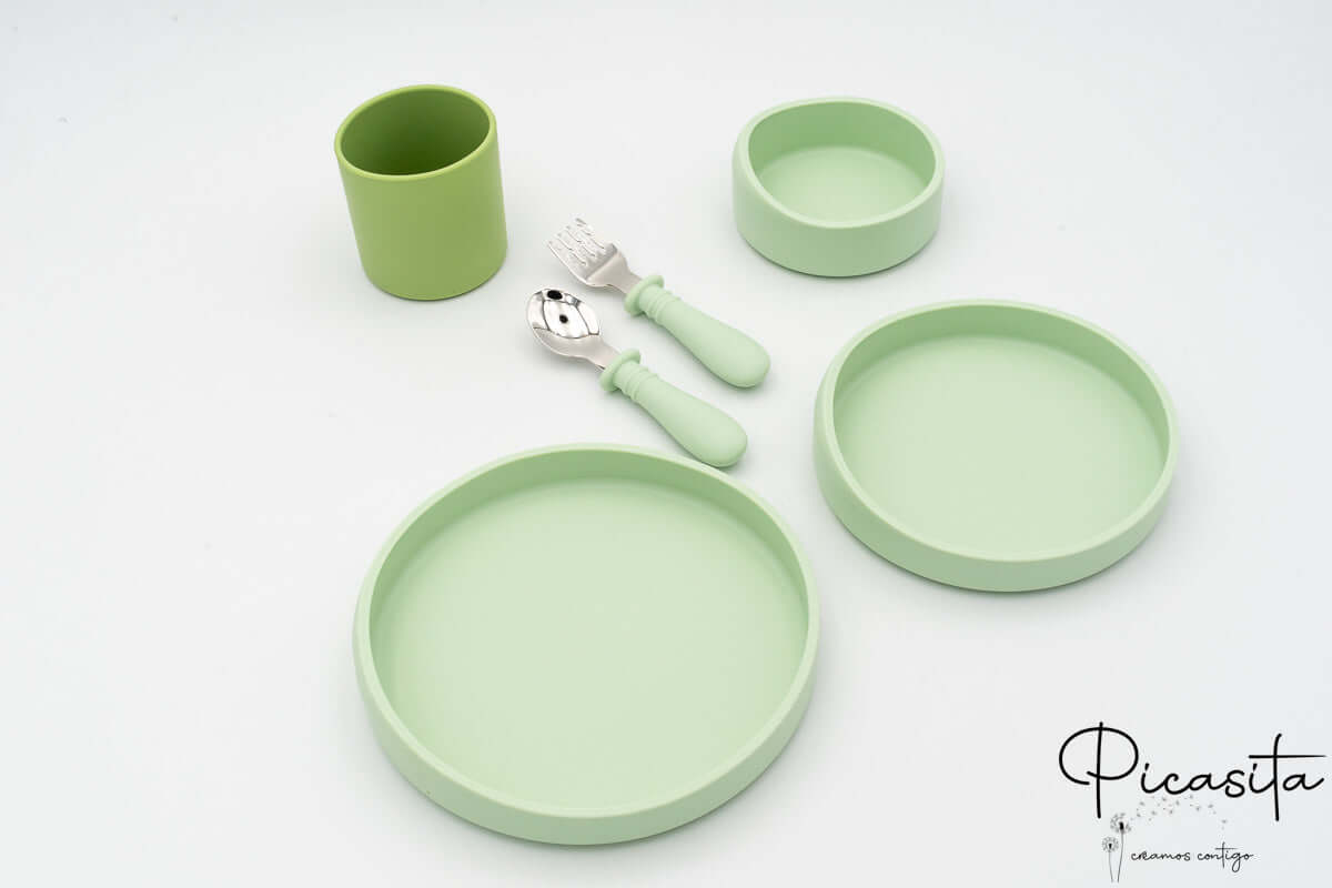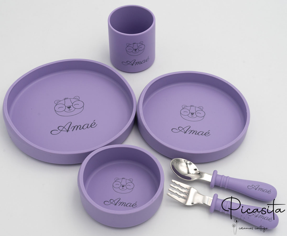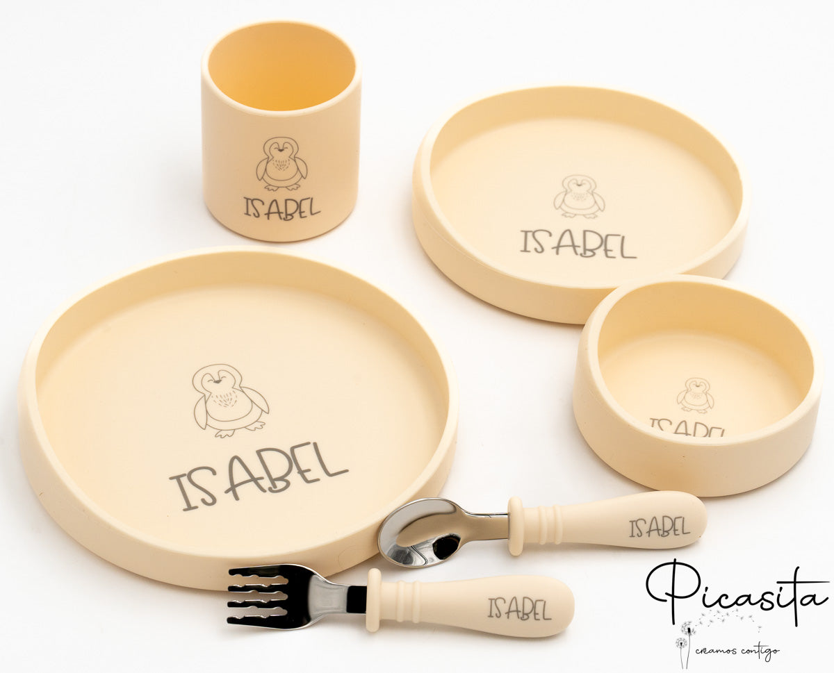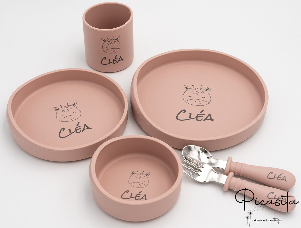 Im Gegensatz zu anderen Optionen auf dem Markt ist dieses Set für diejenigen gedacht, die lieber ihre eigenen Stoff-Lätzchen verwenden und das Silikonlätzchen weglassen, um sich auf die wesentlichen Elemente des Tisches zu konzentrieren. Sie können weitere Optionen in unserer vollständigen Kollektion von personalisierte Kindergeschirr entdecken.