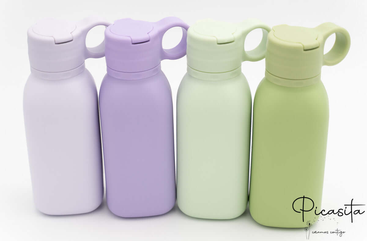 Wir wissen, dass die Sicherheit und das Wohlbefinden deiner Kinder für dich oberste Priorität haben. Deshalb haben wir bei picasita die Silikonflasche entworfen, die sie im Alltag begleitet. Hergestellt aus lebensmittelechtem Silikon höchster Qualität und BPA-frei, ist diese Flasche nicht nur sicher, sondern auch äußerst widerstandsfähig gegen die unvermeidlichen Stürze im Park oder Kindergarten. Ihre weiche Haptik, das matte Finish und das Design in wunderschönen Pastellfarben machen sie zum Lieblingsaccessoire der Kleinen und fördern ihre Selbstständigkeit beim Trinken dank des praktischen Klappdeckels mit ergonomischem Griff.