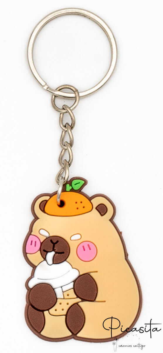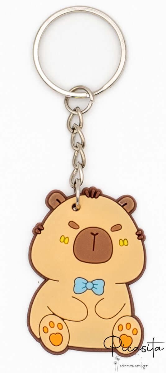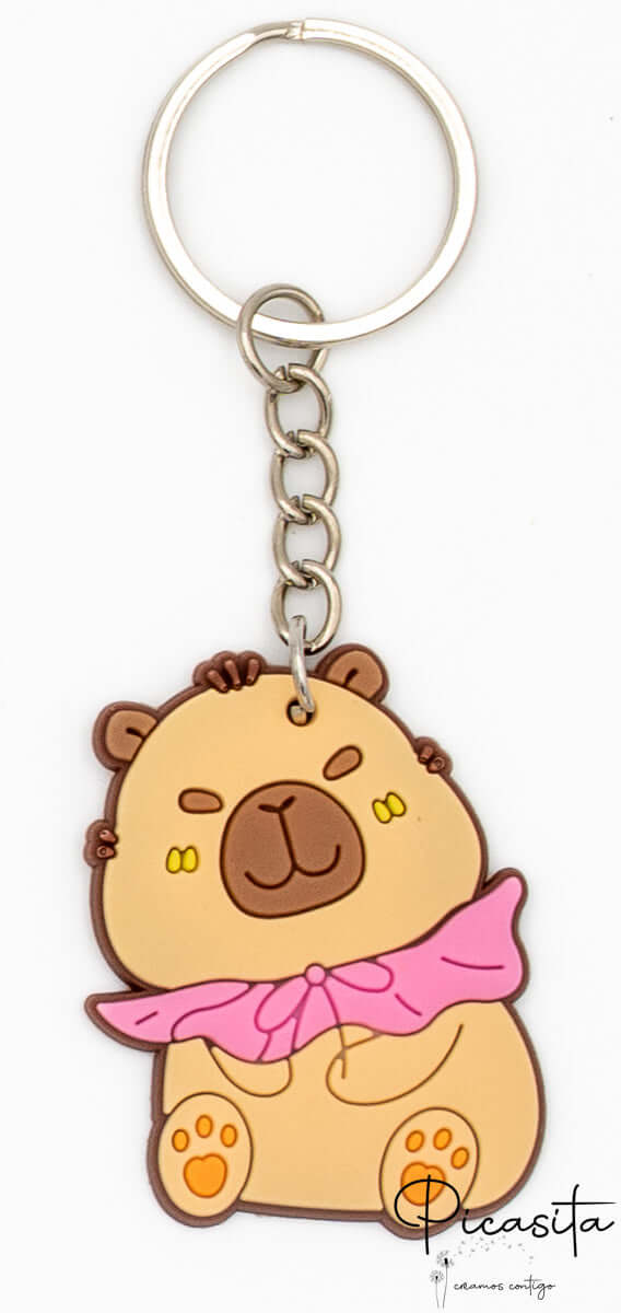 Die Capybara-Figur besteht aus weichem, flexiblem und sehr widerstandsfähigem Gummi, begleitet von einer hochwertigen Metallkette und einem Ring, um ihn sicher an jedem Reißverschluss oder Schlüssel zu befestigen.