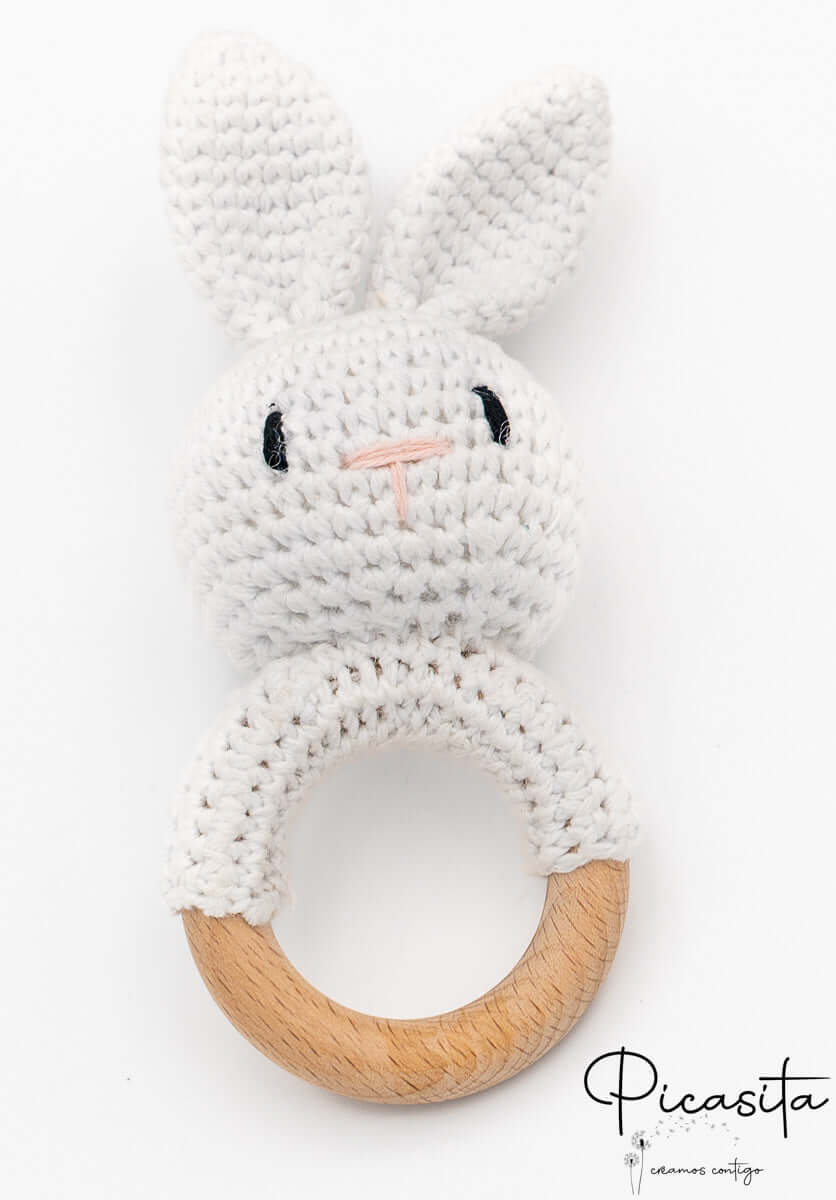 Diese wunderschöne gestrickte Rassel kombiniert zwei grundlegende Texturen für die taktile Entwicklung des Babys. Zum einen verfügt sie über einen robusten Ring aus naturbelassenem Buchenholz, perfekt geschliffen, weich und splitterfrei – ideal, damit das Baby darauf beißen und den Druck sowie die Schmerzen im Zahnfleisch lindern kann. Zum anderen ist der Kopf des niedlichen Hasen ein weicher gestrickter Beißring, gefertigt aus hochwertigen Garnen, die Wärme und Komfort beim Anfassen bieten.