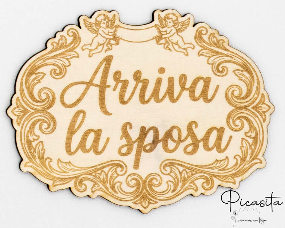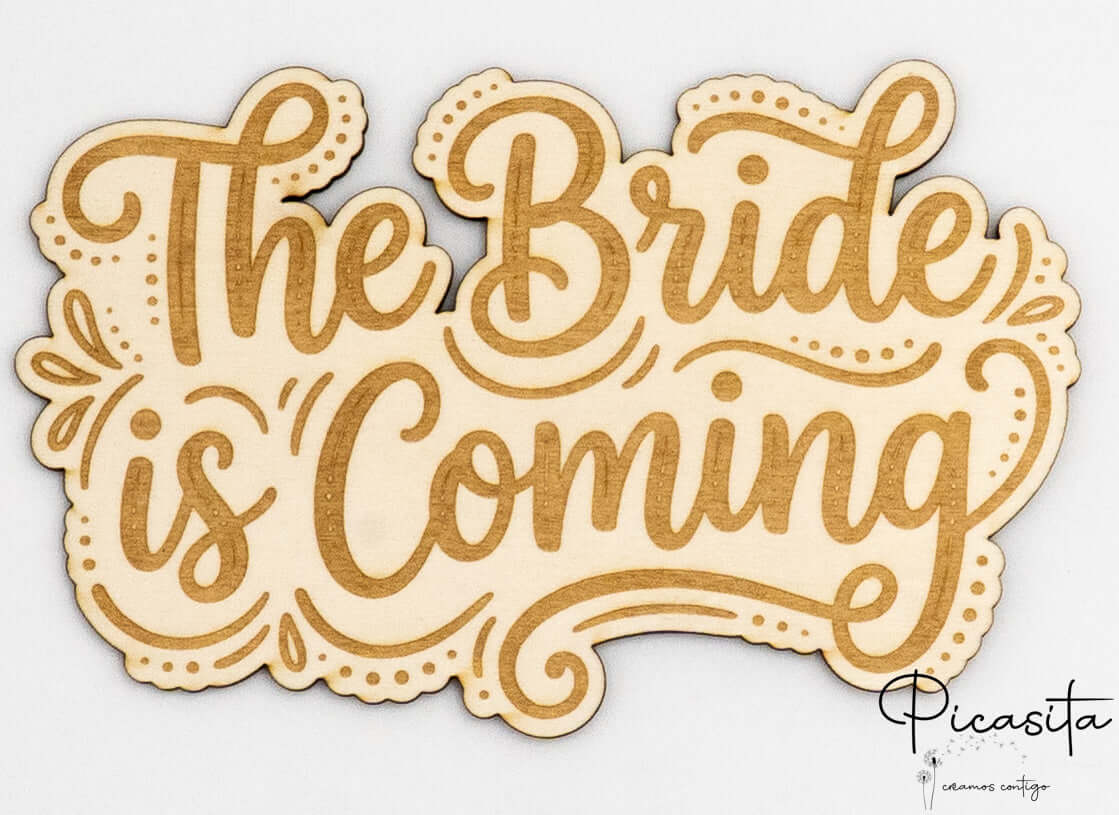 Ja! Wie du auf unseren Produktbildern sehen kannst, bieten wir das Design in mehreren Sprachen an, darunter Spanisch, Englisch (The Bride is Coming), Italienisch (Ecco la sposa) und Portugiesisch (Lá vem a noiva).