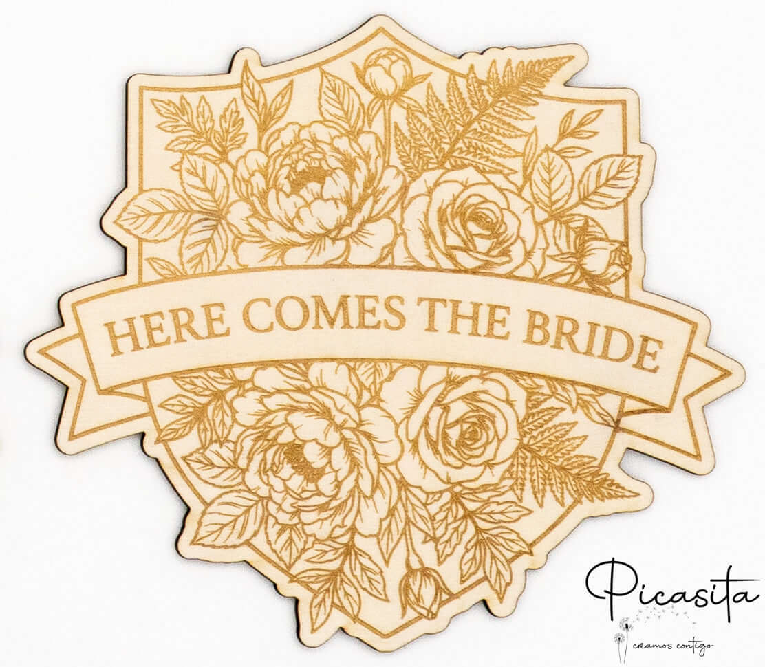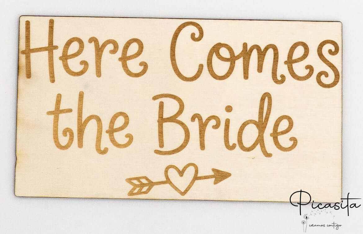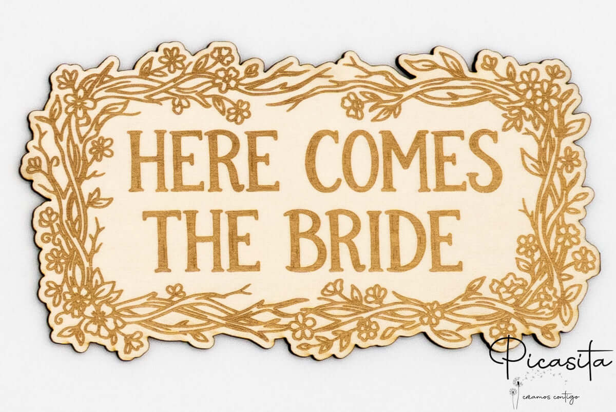 Wir wissen, dass jedes Detail bei einer Hochzeit zählt. Deshalb ist dieses wunderschöne Schild mit der Aufschrift hier kommt die Braut in mehreren Sprachen und Formaten erhältlich, um sich der Vielfalt jedes Paares anzupassen. Du kannst zwischen der Größe A4 (29x21 cm), die ideal und sehr handlich für die kleinsten Blumenkinder ist, oder der Größe A3 (42x29 cm) für bessere Sichtbarkeit in langen Gängen wählen. Außerdem bieten wir die Option, den Schnitt dem Umriss des Designs folgend zu gestalten für einen organischen Look oder im klassischen rechteckigen Format, dem wir zwei Löcher und eine rustikale Schnur zum Aufhängen oder bequemen Halten während des Einzugs hinzufügen können.