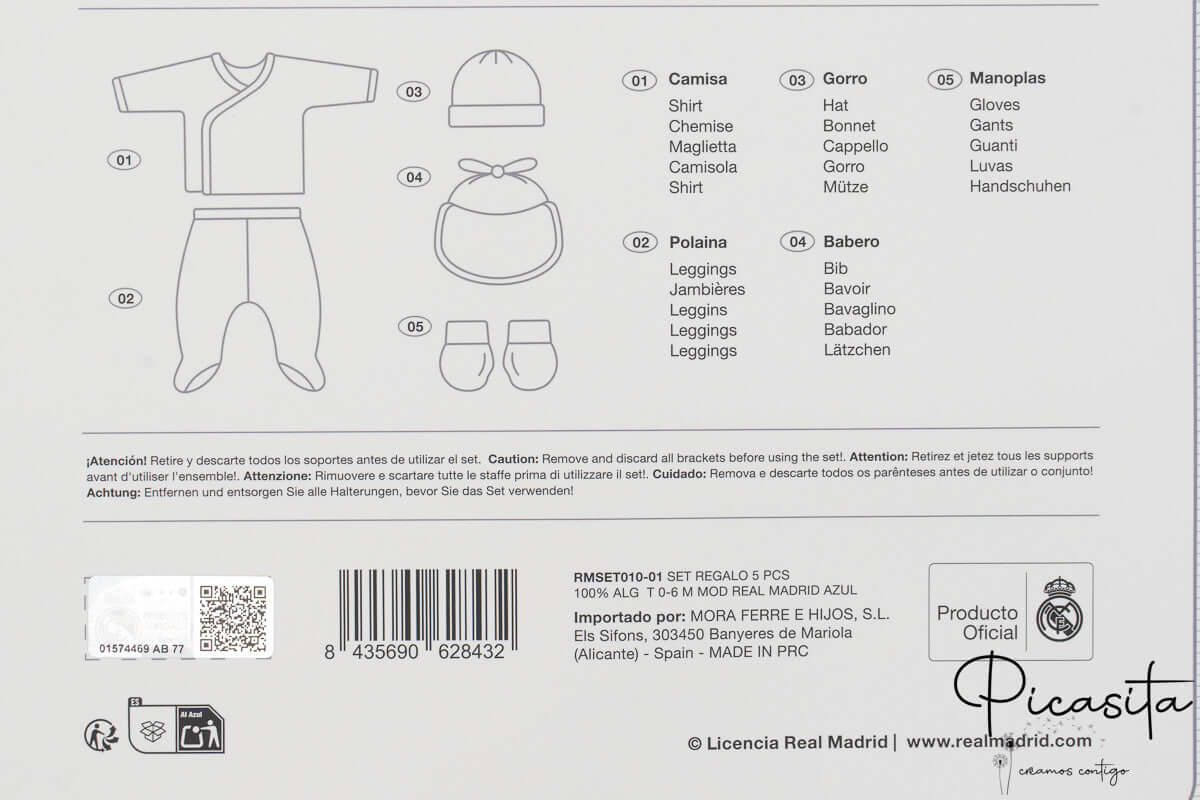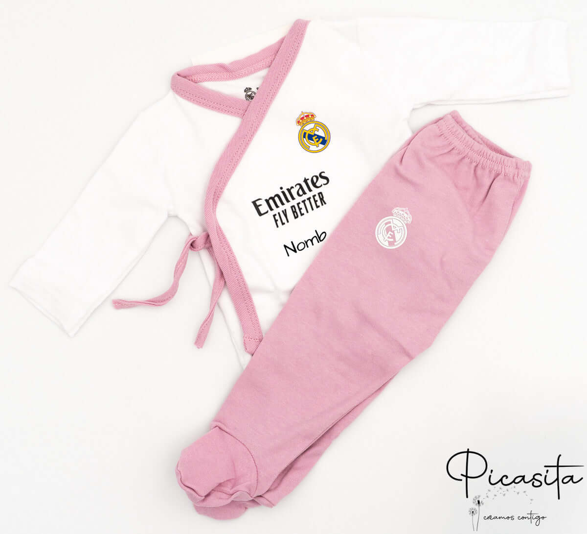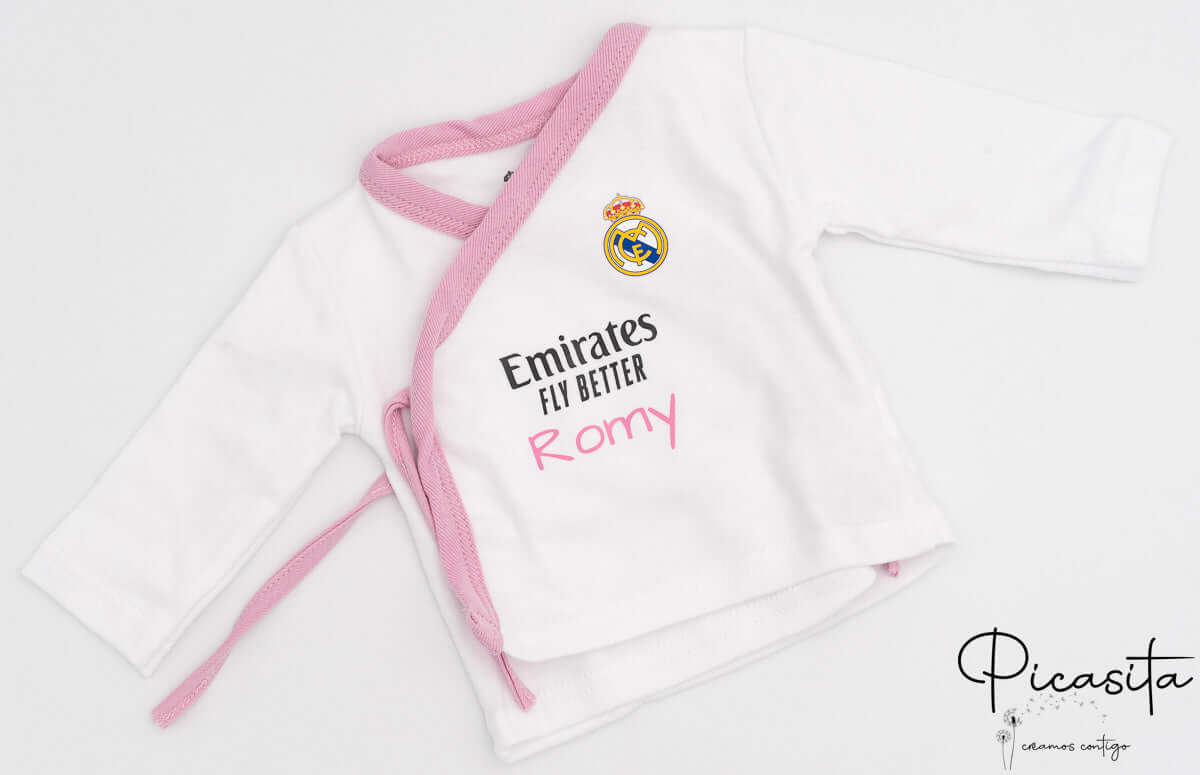 Suchst du ein wirklich unvergessliches Geschenk? Bei Picasita achten wir auf jedes Detail. Dieses Neugeborenen-Set Real Madrid wird mit dem Namen des Babys auf der Vorderseite des Hemdes mittels hochwertiger Thermotransferfolie personalisiert. Mit dem Namen wird aus dieser schönen Babybekleidung Real Madrid ein einzigartiges Andenken fürs Leben. Außerdem wird das Set in einer eleganten Geschenkbox geliefert, ideal, um es direkt den glücklichen Eltern zu überreichen.