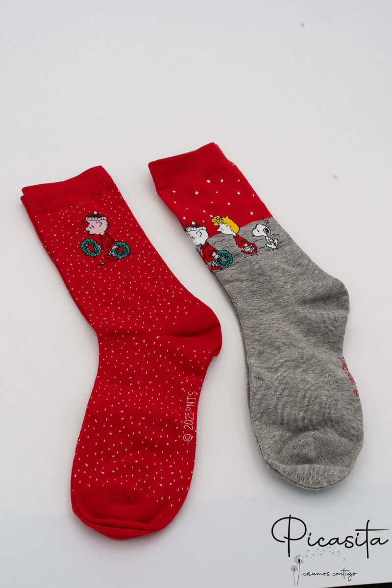 Vergiss die Monotonie mit diesen originellen Socken. Ihr asymmetrisches Design ist ein Augenzwinkern an die Kreativität: Während ein Fuß einen fröhlichen roten Hintergrund mit zarten weißen Punkten und der unverwechselbaren Figur von Snoopy zeigt, kombiniert der andere ein elegantes meliertes Grau mit einem roten oberen Streifen, auf dem Charlie Brown und seine Freunde zu sehen sind. Diese Asymmetrie macht sie zu originellen Socken, die sich von traditionellen Winteroptionen abheben und zum Star-Geschenk bei jedem festlichen Tausch oder Wichteln werden.
