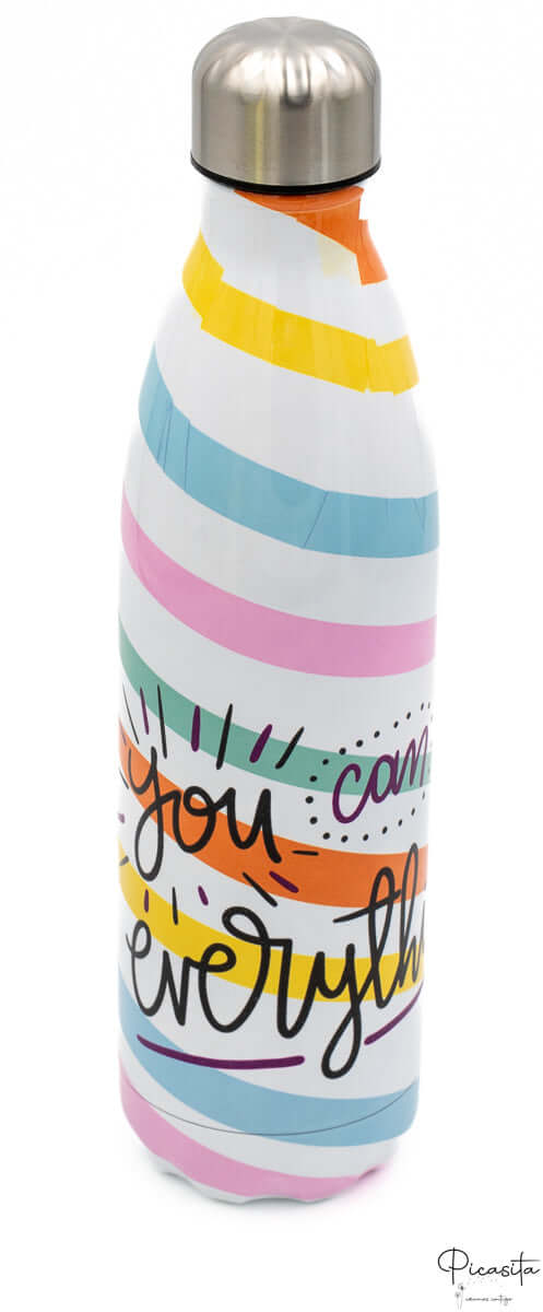 Beginne jeden Morgen mit der Energie und Motivation, die du brauchst. Bei picasita wissen wir, wie wichtig es ist, gut hydriert zu bleiben – für dein körperliches und geistiges Wohlbefinden. Deshalb haben wir in unseren Katalog diese unglaubliche Thermoflasche mit Botschaft aufgenommen, die nicht nur deinen Durst stillt, sondern dich auch daran erinnert, wozu du fähig bist. Egal, ob du eine robuste Sportflasche suchst oder eine treue Begleiterin fürs Büro – ihr ergonomisches und leichtes Design passt perfekt zu deinem Lebensstil.