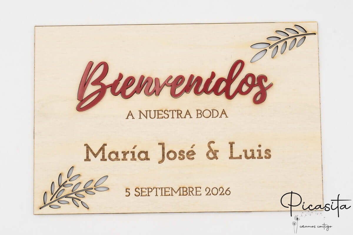 Wir wissen, dass der Willkommensschild zur Hochzeit die perfekte Proportion braucht, um nicht übersehen zu werden. Deshalb bieten wir dieses Eingangsschild zur Hochzeit in drei strategischen Größen an: A4 (21x29 cm mit 3 mm Stärke), A3 (29x42 cm mit 4 mm) und das imposante A2 (42x59 cm mit 5 mm). Die Stabilität und Wärme des Holzes garantieren, dass dein Schild Willkommen zu unserer Hochzeit während der gesamten Veranstaltung intakt bleibt und darüber hinaus als wunderschöne dekorative Erinnerung für dein Zuhause dient, lange nachdem du „Ja, ich will“ gesagt hast.